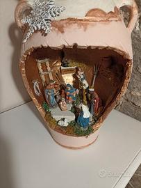 Presepe artigianale realizzato dentro una brocca,compreso di luci... altezza della brocca 45cm circa, altezza totale 54 cm circa.... pezzo unico!!