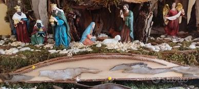 Anche se il Natale è passato ma poi tornerà... Vendo splendido presepe interamente realizzato a mano, un pezzo unico frutto di un attento lavoro artigianale. La struttura è stata creata seguendo la filosofia del recupero creativo, utilizzando esclusivamente materiali naturali e di riutilizzo. Caratteristiche principali: Materiali: Base e pareti in vera corteccia e legno massello, muschio naturale stabilizzato e legname recuperato da cassette della frutta trattate. Dettagli: Ogni elemento (dal pozzo alla porta laterale) è stato assemblato con cura per ricreare un'ambientazione rustica e suggestiva. Stile: Design naturale e organico, perfetto per chi cerca una decorazione natalizia diversa dai soliti prodotti industriali. Dimensioni: largo 1.60 m. profondo 52 cm Statuine e luci led calda ncluse nel prezzo L'opera è pronta per essere esposta e rappresenta un elemento di grande calore per l'arredamento delle feste. Prezzo: € 180.00 Consegna: Disponibile per ritiro a mano