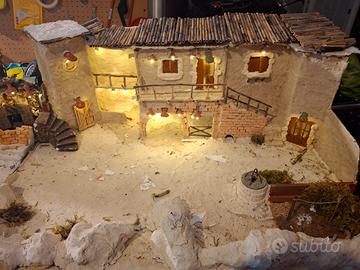 presepe in cartapesta dotato di luci e motorini per fontana d'acqua .lunghezza 1,41m larghezza 60cm larghezza