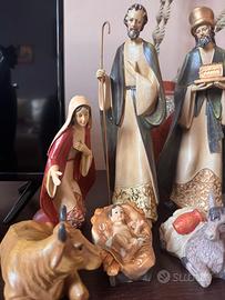 Vendo presepe completo con gesu’, giuseppe e maria con i tre re magi, bue asinello pecora e pastore, tutto in ceramica formato abbastanza grande una statuetta e circa 30cm, prezzo trattabile.