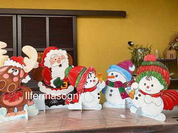 Sagome in legno, naturale, bianco o dipinto a mano. Impermeabilizzate, colori e materiali atossici, misura fino a due metri. Molti modelli, creazioni su disegno, spedizione ovunque.