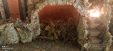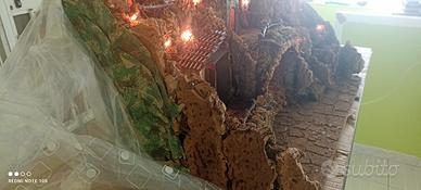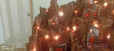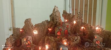 Vendo scenografia per presepe artigianale in sughero e corteccia naturale. Realizzato a mano su più piani con borgo arroccato e diverse casette rifinite nei dettagli. Incluso impianto luci funzionante a 220V che illumina l'intera scena. Materiali di qualità e ottima prospettiva. Solo ritiro in zona. Spedizione internazionale con costo di 130 euro.