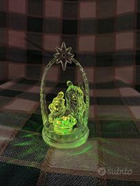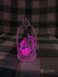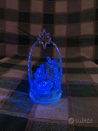 Vendo piccolo presepe in plastica trasparente con luci led multicolore, effetto cristallo.