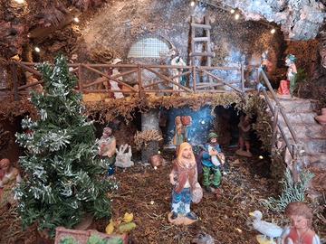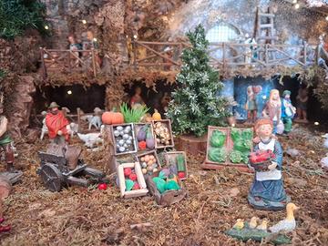 Vendo a 200€ completo di luci ,25 personaggi,20! animaletti di ogni tipo,accessori vari( banchetto verdure , banchetto macelleria,mangiatoia,carretto con anfore,botti,giare, damigiane,alberi vari,e albero centrale grande) oppure 130€ solo struttura 80cm largo,57 cm largo,64cm profondo