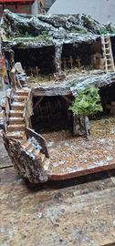 Presepe artigianale fatto a mano con sughero e legno dimensioni 40x28 altezza 35 con lucine a batteria con 8 programmi e Con Natività.