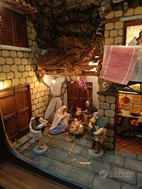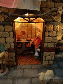 Presepe napoletano realizzato interamente a mano in una TV antica vintage d'epoca.