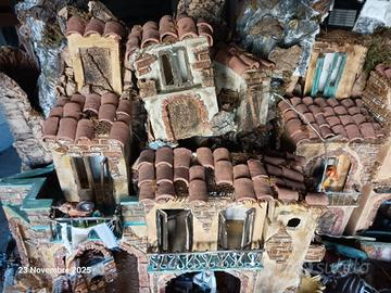 Tipico presepe della tradizione napoletana completo di luci e pastori Dimensioni 100cm x 0.75cm