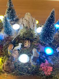 Presepe natalizio fatto a mano compatto con luci