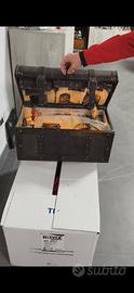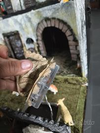presepe fatto a mano con cartone all'interno di un bauletto compreso filo 20 led a batteria (2 stilo AA incluse) 10 statuine più pecorelle e un cammello