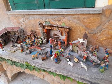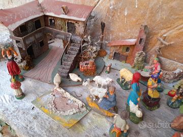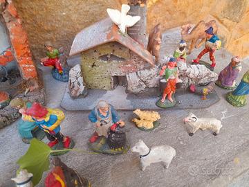 presepe con statuine alcune gesso altre carta pesta