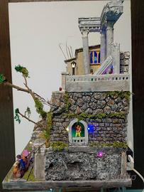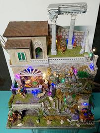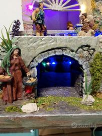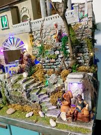 Presepe artigianale misure cm 50 x 40(base) x 58 (altezza) realizzato in EPS rivestito di resina indurente e dipinto a mano.Impianto elettrico a led a bassa tensione,grotta con effetto profondità.E' consigliabile il ritiro in zona,posso anche spedire ma occorre cassa in legno per protezione.Costo di spedizione da determinare in caso di richiesta.