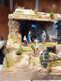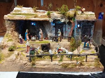 Presepe popolare tutto fatto a mano in polistirene e gesso e stucco comprese le lanterne luci led ottima offerta