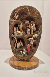 Presepe realizzato in pasta di legno ,anticato con foglia similoro patinata con gommalacca.Dimensioni H.18cm circa L.9cm circa,pastori in terracotta da 3cm.