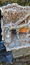 Vendo presepe artigianale con struttura solida e stabile. Dimensioni 80×52×45 cm,senza statuine. Necessita però di piccoli lavori di sistemazione, piccoli pezzi di corteccia sughero da incollare e dettagli da rimettere a posto.
