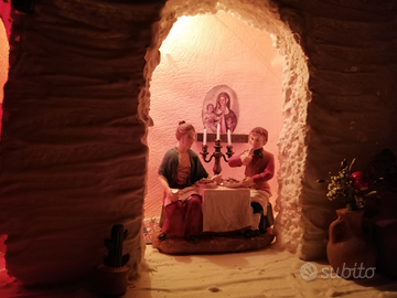 Vendo presepe, stile napoletano, alto 80 cm, e 120x60. Prodotto interamente a mano, con poliuretano espanso e polistirolo, stucco e legno.