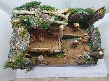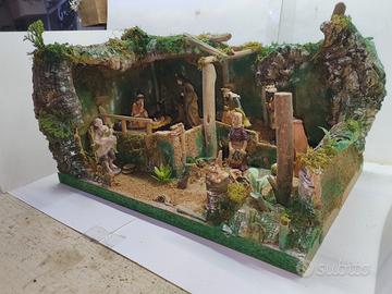 PRESEPE ARTIGIANALE REALIZZATO A MANO, IN COMPENSATO, LEGNO E SUGHERO, CON PASTORI IN GESSO ALTEZZA 10CM, 10 PEZZI TOTALI.