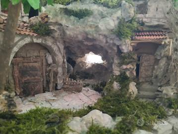 presepio fatto a mano completo con statuine e luci,misure 35x40x45