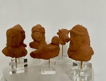 Presepio in terracotta: 8 effigi dei personaggi del presepio in terracotta montate su supporto in plexiglas.