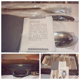 Servizio di posate 75 pezzi, in Silver plated con decorazioni in oro zecchino 24K. Marca PRESIDENT.