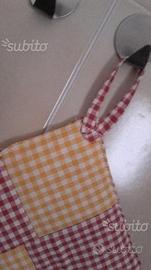 Presina da cucina interamente realizzata a mano in tessuto di puro cotone a quadretti rossi e gialli, imbottitura in poliestere. Spedizione euro 3,00