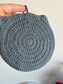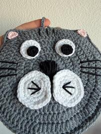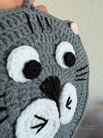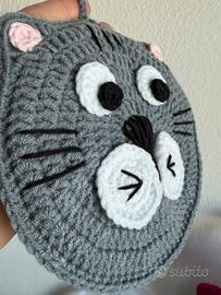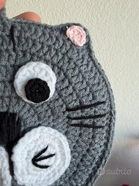Presina a forma di gatto realizzata a uncinetto in misto cotone Formata da 2 pannelli uniti Larga circa 14/15cm