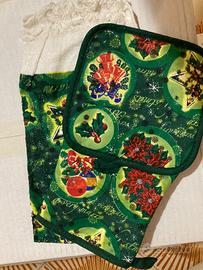 Vendo confezione regalo composta da presina guantone e strofinaccio cucina a tema NATALE NUOVI con cartellino ideale per regalo di Natale