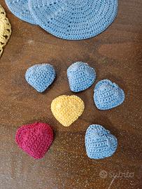 vendo 4 coppie di presine da cucina lavorate all' uncinetto. vari colori e misure come da foto. in omaggio 6 cuoricini.