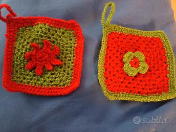 Simpatiche presine da cucina fatte a mano (uncinetto) dai colori natalizi, x regalare o da tenere x se. il prezzo e x 3 unita