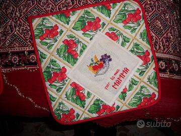 Presine in puro cotone, MAI USATE, ricamate a mano in punto croce, con la scritta " PER LA MIA Mamma" e "Festa della Mamma", cedo perchè regalo doppione.Misure cm 20 per 20. Euro 3 ognuna. Se prese entrambe,pratico sconto.