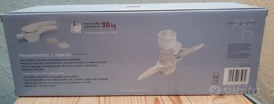 Pressa patate modello extragourmet nuovo, marca Giannini extra, provvisto di due trafile in acciaio inox intercambiabili, facile da montare e smontare per un pratico utilizzo e manutenzione, si adatta a diversi tipi di contenitori, nuovo mai usato ancora nella confezione originale