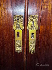 Prestigiosa Vetrina Liberty in Mogano – Dettagli in Ottone e Vetri Molati.