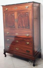 • Dettagli: Intagli a medaglione centrale, gambe mosse e ferramenta in ottone brunito originale.