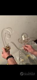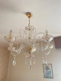 Vendo prestigioso lampdario in vetro di murano com due aplique a parte. Si e rotto un 'braccio' ma come si puo vedere dalle foto una volta appeso non si nota. No perditempo grazie.
