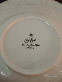 vendo meraviglioso servizio piatti in finissima porcellana Royal Bonne China decoro Arleen acquistato oltre 30 anni fa non è mai stato utilizzato. Nuovissimo e perfetto. Decoro filo oro Composto da 24 piatti piani, 12 fondi, 12 piattini, 12 tazzine caffè, 12 tazze da tè, grande zuppiera, teiera, caffettiera, due insalatiere,due piatti portata,due zuccheriere,due lattiere Come si può vedere dalla foto eccezionale qualità della porcellana data dalle trasparenza