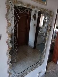 Elegantissimo specchio in vetro di Murano realizzato artigianalmente da maestri vetrai, assemblatori e incisori che danno vita a questa magnifica opera.