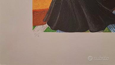 “Presunta colpevole” di Pino Procopio è una serigrafia su carta in edizione limitata (circa 45×75 cm) dell’artista italiano, noto per il suo stile figurativo ironico, colorato e giocoso.