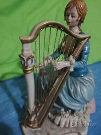Ceramica Capodimonte, donna con arpa, vista la delicatezza e il pregio dell'articolo non si effettuano spedizioni, solo consegna a mano.