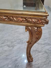 Vendesi causa (parziale) cambio stile arredamento casa per ristrutturazione prezioso tavolino in foglia d'oro e d'argento modello fine '700, col piano in vetro (può essere inserito anche in un'abitazione moderna con tocchi di antico, grazie al piano in vetro che "alleggerisce"). Misure 121 (L) x 72 (L) x 50,5 (H). Preziosa lampada in porcellana fiorentina misure 68 (H) x 42 (diametro max paralume). Oggetti di valore, rifiniti senza sbavature. Il tavolino è costato anni fa € 2.000, la lampada € 600. Disponibili il tavolino ad € 800, la lampada ad € 250; in blocco € 900. Astenersi perditempo, no permute. Non vendo per bisogno, trattasi NON dei soliti complementi per casa che si trovano nei mercatini, qui siamo su un altro livello. Preferibile ritiro in sede vista la tipologia di oggetti.