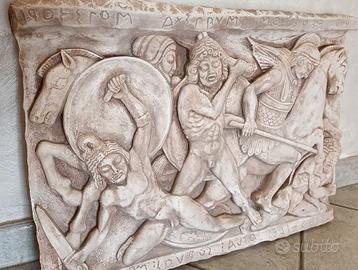Bassorilievo in gesso stile etrusco, molto scenografico e di grande effetto per arredamento di interni. Si tratta di una riproduzione artigianale e non di un opera originale. Le misure sono 62x45x4 cm.