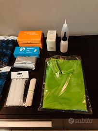Bigodini permanente, fogli permanente, boccette per il liquido della permanente e linguette permanente, mollette, forcine grandi e forcine piccole, spille per bigodini e casco asciuga capelli portatile, mantella taglio.