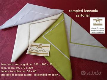 Proponiamo completi letto di nostra produzione in percalle di purissimo cotone makò rasato mercerizzato in 50 colori .