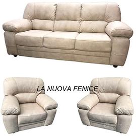 Divani 3 posti,2 posti e 1 posto sia in ecopelle anti screpolatura e sia in tessuto antimacchia.Il fusto è realizzato completamente in legno e l'imbottitura della seduta D. 30.Vari colori a scelta.