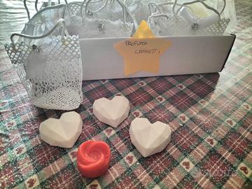splendida idea segnaposto, piccole bomboniere o semplicemente da regalare o regalarsi. Profumatori in gesso o in cera, ideali anche per brucia essenze così da profumare non solo cassetti ma anche l' ambiente.
