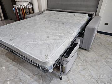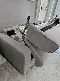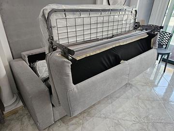 Meccanismo letto in acciaio strutturale con apertura mediante capovolgimento anteriore dello schienale e delle sedute senza rimozione degli elementi di tappezzeria.