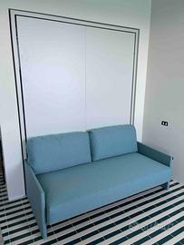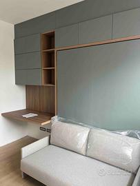 PROMOZIONE SUL NUOVO , QUINDI DA PRODURRE , SUL LETTO A SCOMPARSA VERTICALE MATRIMONIALE CON DIVANO , MODELLO PENELOPE 2 SOFA' ,IN FINITURA BASICA NOBILITATO BIANCO , DIVANO TESSUTO CAT. 1 , SENZA OPTIONAL INTERNI.