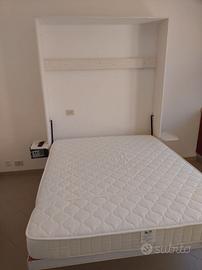 Letto a scomparsa 160*200 come da foto, in legno massello, no truciolato o MDF,.con rete a doghe. Artigianale. Eventualmente anche materasso ignifugo