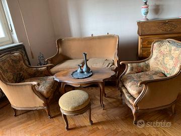 Gruppo: Scrittoio con alzata, coppia consolle, Lampadario, coppia candelieri, Salotto (da ristrutturare), Specchio