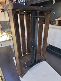 In legno di faggio,trattamento color noce scuro,vernice staffe metallo ad alta temperatura.