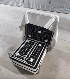 Rivestimento in pelle bianca rimovibile e struttura rigida in ferro.