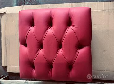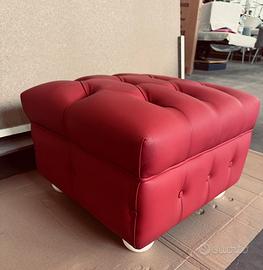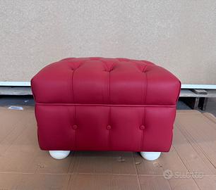 Elegante Puff in capitonet in vera pelle rosso , con piedi a cipolla colore Bianco ( possibilta piede color noce)